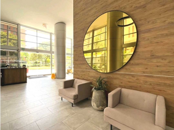 Venta de aparta estudio en Medellín, sector Ciudad del Río, área construida de 52 mt2 distribuidos en una alcoba con vestier y baño, baño social, salón, comedor, cocina integral con mesón en qurztone, balcón.