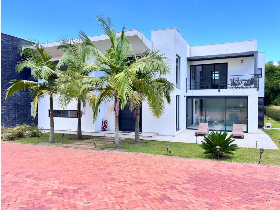 Lote 3.200m²  la casa tiene 800m²  distribuidos en 5 habitaciones cada una con vestier y baño + alcoba de servicio con baño,  2 baños sociales, salón comedor  cocina abierta, moderna e integrada, biblioteca, alcoba principal con salida al jardin, 3 estar, 2 terrazas, deck, 3 parqueaderos cubiertos y cuarto util.